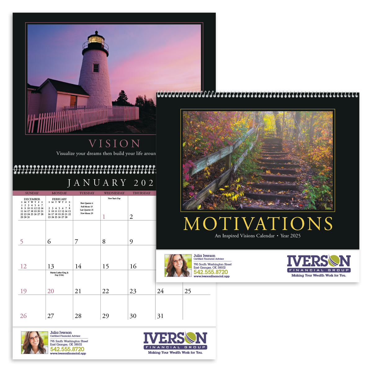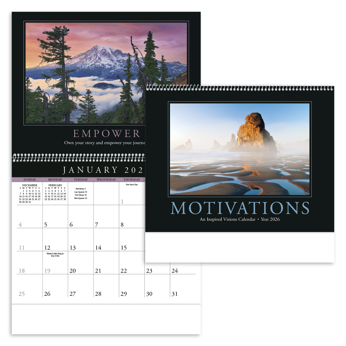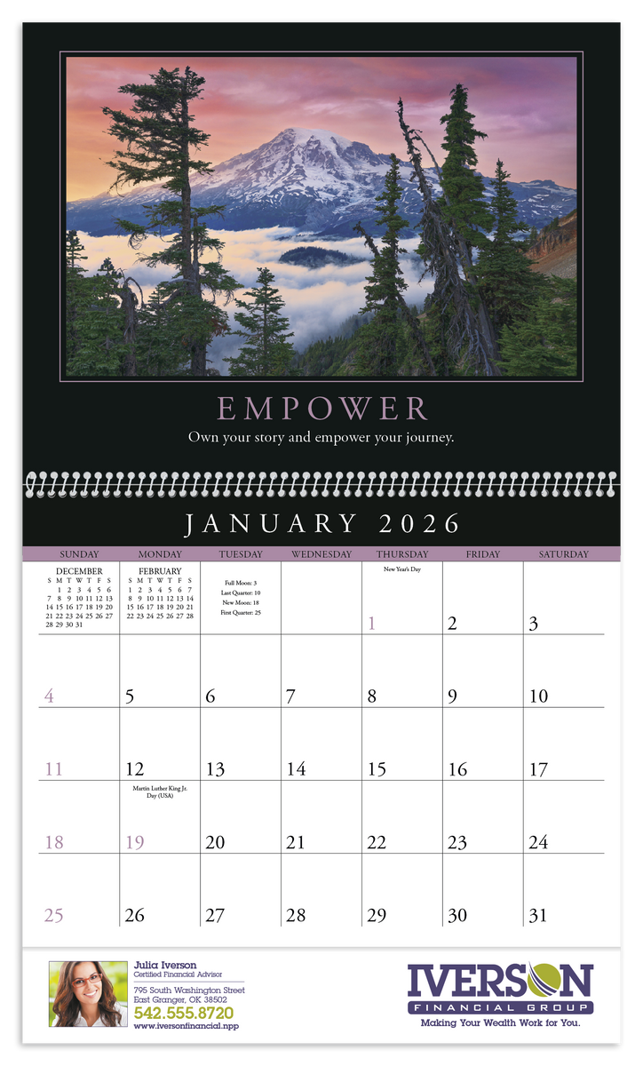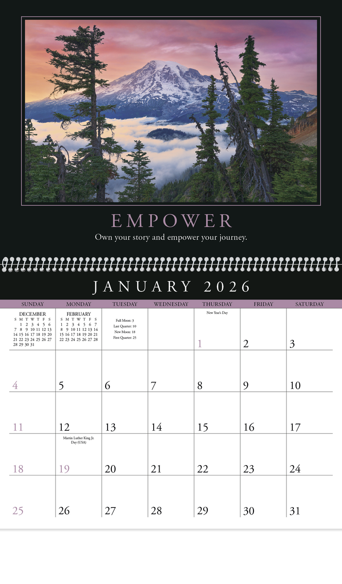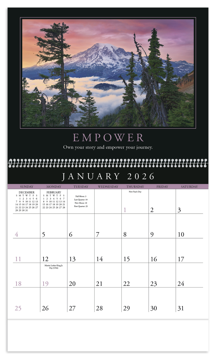 This eye-catching calendar inspires optimism, vision, teamwork, and excellence. Its dynamic photographs, inspirational quotes, and sleek pad design will keep you motivated day after day. The FSC® label means that the materials used for this product come from well-managed FSC®-certified forests and other controlled sources.