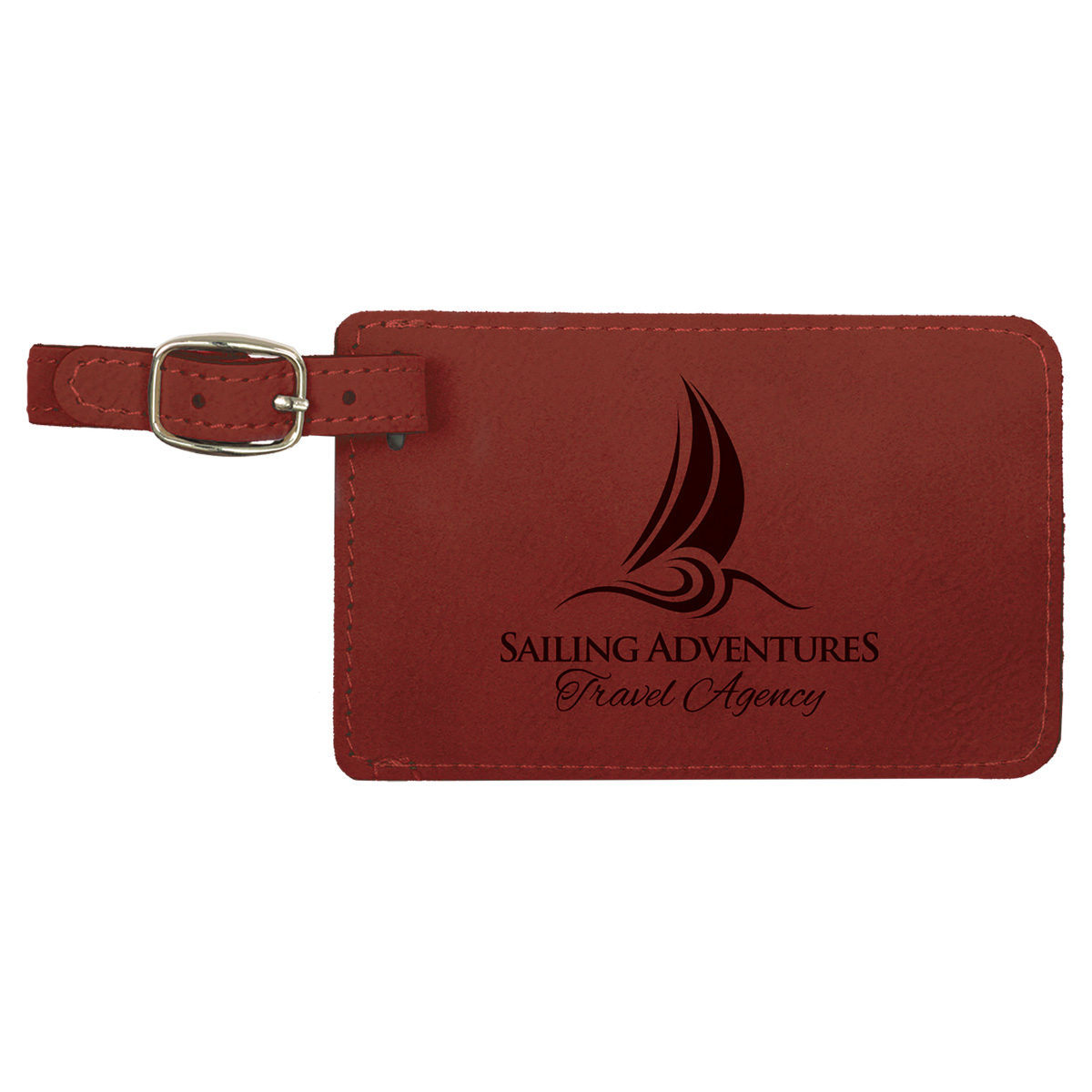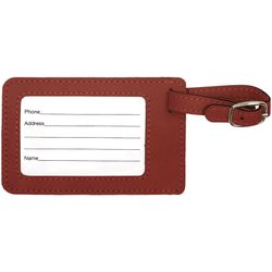 This leatherette luggage tag offers the look and feel of genuine leather at a fraction of the price. This richly textured, synthetic material is water resistant, easy to clean and durable enough for the rigors of daily use. This item can be Laser Engraved or UV Printed. Removable white paper insert has lines for Name, Address & Phone. Will hold insert up to 2 1/8" x 3 3/8". Strap has silver buckle. Laser engraved leaving a black imprint. 4 1/4" L x 2 3/4" H x 1/16" Thick