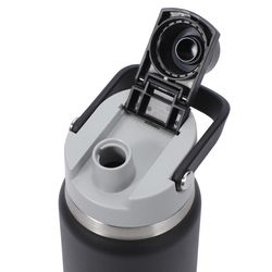 Stay hydrated with the NAYAD® Crusade 28 oz Bottle, made of rust-free stainless steel with a powder-coated finish. Features copper-lined vacuum insulation, hidden collapsible silicone cup for sharing, and a twist-top spout. Keeps drinks hot for 6 hours or cold for 16. Includes a fold-down handle and condensation-free surface. BPA-free, FDA certified, and hand wash only.